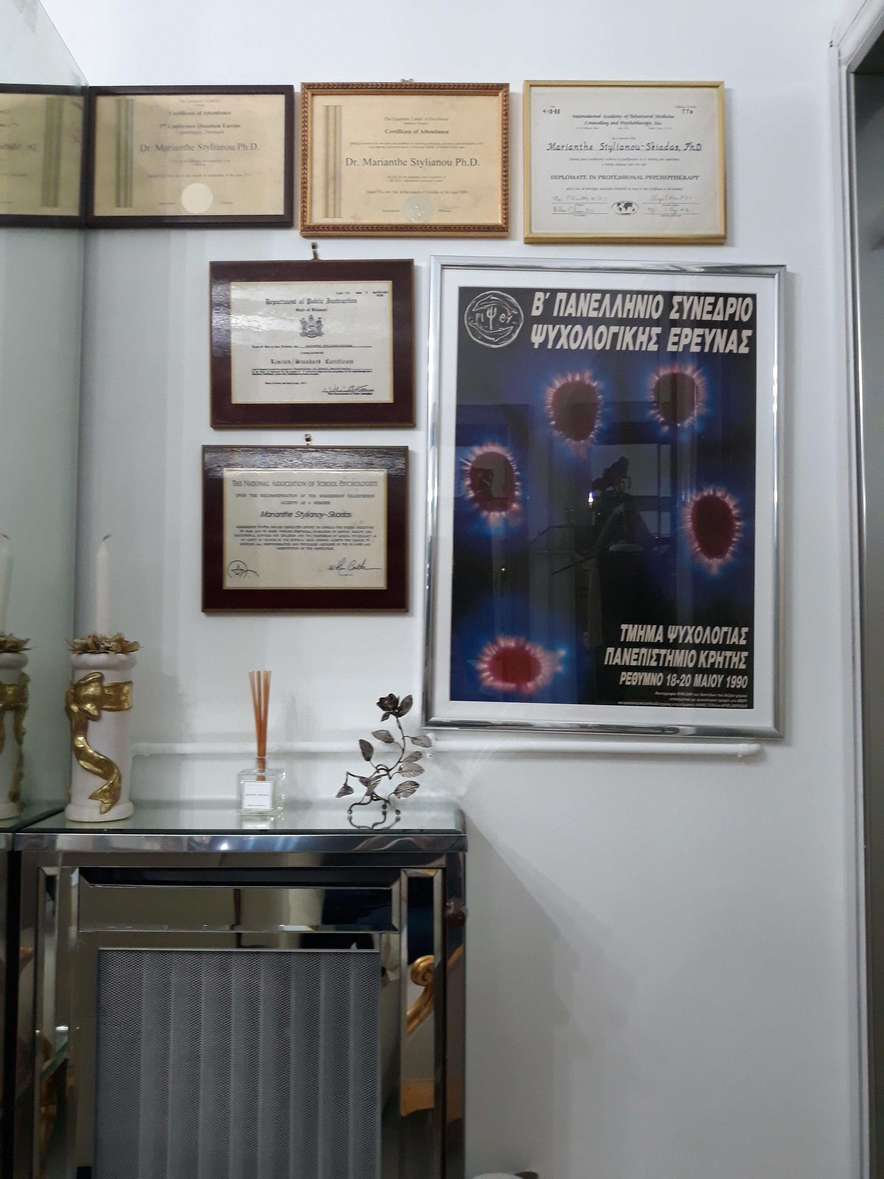 Π.Α. Καθηγήτρια Ψυχολογίας Παν/μίου Κρήτης. Π. Διευθύντρια Κ.Ψ.Υ. Άμεσης Ψυχολογικής Στήριξης , Οικογενειακής Ψυχοθεραπείας, Μονάδα εφήβων. Αδειούχος: 1.Ψυχολογίας Ελλάδος-Νο 2646/98 2.Κλινικης Ψυχολογίας MH No 1328, Η.Π.Α. 3. Κλινικής Ψυχολογίας No 0111-75, Καναδά 4. Ψυχοθεραπεύτρια (I.A.C.P.) No 776,Η.Π.Α.5. Ψυχοθεραπεύτρια ζεύγους & Οικογένειας MH No 1328, Η.Π.Α. Επόπτρια Σχολικών Ψυχολόγων No 068-40-4530, code: 762 , Η.Π.Α. Κβαντική θεραπεία - Νευρο-φυσιολογία-Bιοανάδραση για όλες τις Ψυχοσωματικές Διαταραχές. Μεταπτυχιακή Πιστοποίηση στη Νευρο-Φυσιολογία, από την Ιατρική σχολή της Νευρο-ανατομίας, Πανεπιστήμιο Victor Babes Timisoara, Ρουμανία.