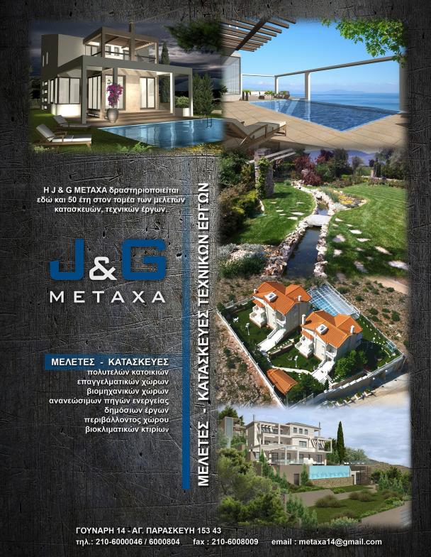 J&G ΜΕΤΑXΑ E.T.E. ΜΕΛΕΤΕΣ - ΚΑΤΑΣΚΕΥΕΣ ΤΕΧΝΙΚΩΝ ΕΡΓΩΝ πολυτελών κατοικιών, επαγγελματικών χώρων, βιομηχανικών χώρων, ανανεώσιμων πηγών ενέργειας, δημοσίων έργων, περιβάλλοντος χώρου, βιοκλιματικών κτιρίων